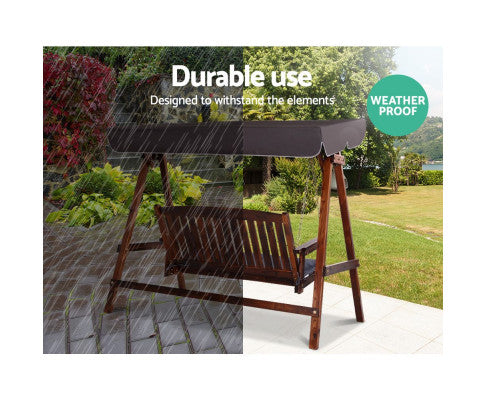 Made of durable fir wood, the frame is strong and sturdy while the generously padded seat upholstered in durable polyester offers ultimate comfort. The weatherproof seat covers are also removable for easy cleaning.