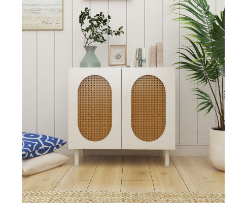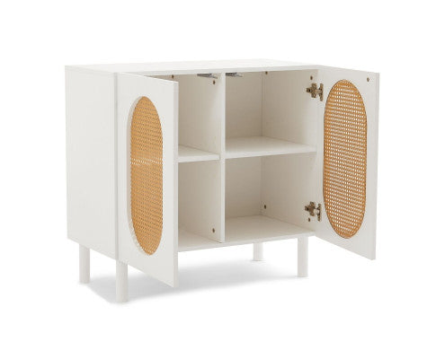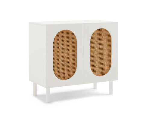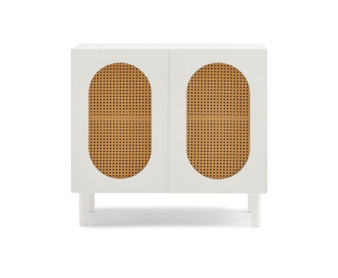 RATTAN ACCENT CABINET IN WHITE - 2 DOOR